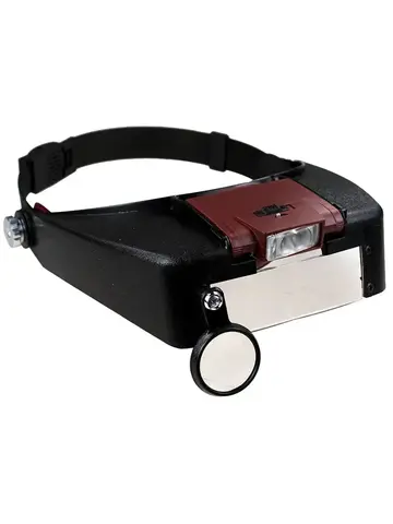 Артикул: 67338 Увеличение, крат:1,5–10 Налобная лупа с LED-подсветкой – незаменимый инструмент для проведения точных работ. Эта модель позволяет рассматривать мелкие предметы с увеличением от 1,5 до 10 крат и при этом оставляет руки свободными. Лупа крепится на лбу с помощью регулируемого обруча. Сменные линзы дают увеличение 1,5x, 3x, 8,5x и 10x. Лупа снабжена подсветкой из двух ярких белых светодиодов. Лупа с LED-подсветкой удобна при работе в условиях слабой освещенности. Кроме того, лупа со светодиодной подсветкой может использоваться днем для направленного освещения изучаемого предмета. Характеристики Увеличение, крат 1,5–10